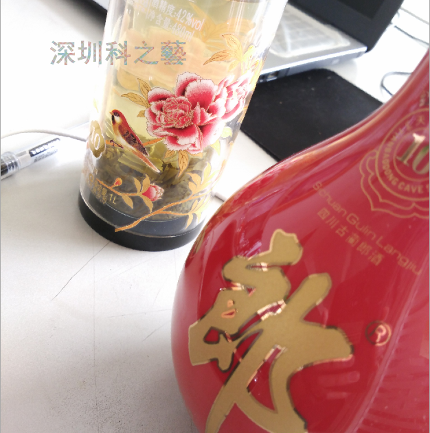 随着玻璃热转印技术的不断改进,酒瓶热转印变得可能。热转印工艺能满足色彩丰富的外观装饰特点,为酒类行业画上了“浓墨重彩”的一笔。请看下图: